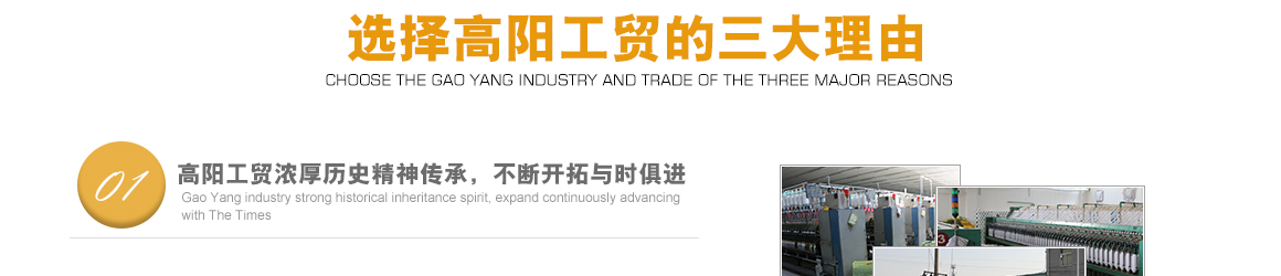 太倉市高陽工貿有限公司是專業從事特種紗生產十數年的一線生產廠家,坐落于江蘇省蘇州市太倉市雙鳳鎮新湖建湖路29號,太倉隸屬長江三角洲經濟圈,交通便捷,經濟發達,是著名的紡織生產基地。 公司歷史要追溯到1982年就成立的新湖毛紡織廠。1996年,毛紡織廠與上海二十二棉在新湖聯合組建了太倉市新湖福利綜合廠。2002年為適應市場的飛速變化,公司轉制重組更名為太倉市高陽工貿有限公司。同時公司適時調整生產經營策略,調整產品品種結構,把生產特種紗作為主要發展方向,純棉、滌綸竹節紗是我們的主要產品。 公司多年來始終保持了持續穩定發展的良好勢頭,在激烈的市場競爭中發展壯大,不斷前行。我們把“走品牌發展之路,創紗線知名商標”作為公司持續發展的核心戰略。以市場為導向,堅持“以品種求發展,以質量求生存”的方針,以增強市場競爭力為中心,對不斷變化的市場環境作出快速反應,品牌戰略的實施。公司注重專業人才的引進和先進技術的生產化應用,具備較強的研發設計和生產能力。 公司一直把“品質、創新、誠信”作為企業文化建設的核心。以品質來獲得客戶的滿意,以創新來贏得客戶的贊賞,以誠信來博得客戶的信心。我們把“準時的交貨期,提供零缺點的產品和服務”作為奮斗目標,贏得了客戶的支持和良好的市場信譽。 高陽工貿有限公司愿與廣大客戶加強合作,共享信息,迎接挑戰,共同發展。客戶需求。了解詳細>>